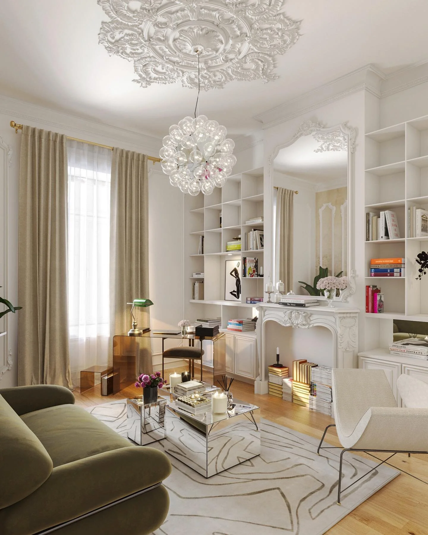 The measured opulence of the Steak House is epitomized by the suspension of a gigantic salt rock above the main dining room–a striking statement piece that at once suggests the simplicity of salt as a basic human need and the endless possibilities that salt offers as a catalyst for flavor and an enhancer of human experience. Delicate vitrine chandeliers dangling throughout the restaurant recall the geometric construction of salt molecules as well as the precarious dependence of cuisine and civilization on their reliable procurement.